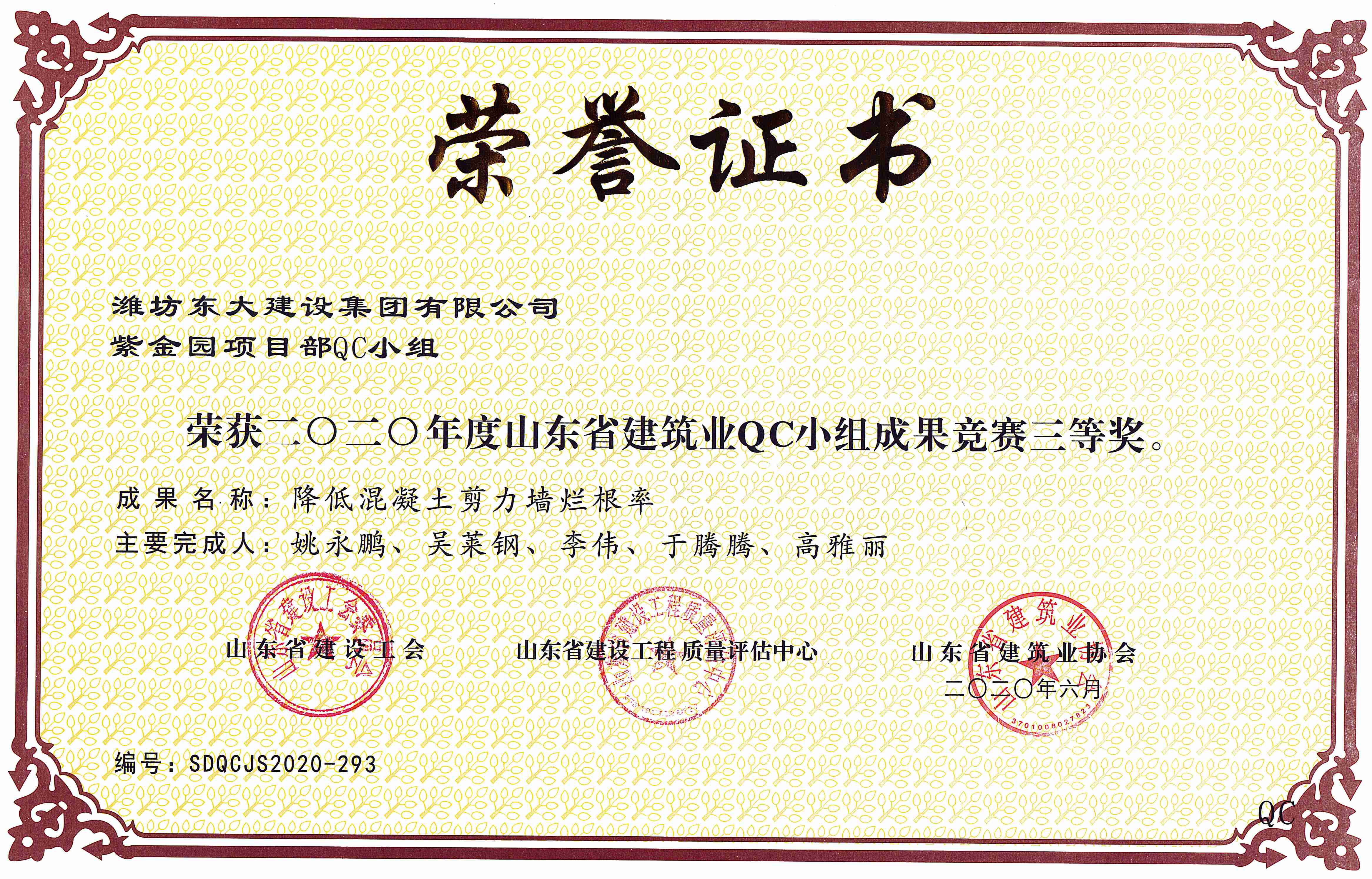 山东省建筑业QC成果